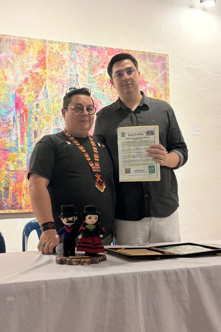 Recibiendo reconocimiento por la Organización Cultural, Zebquisqua Danzas de Boyacá, por mi trabajo como Curador de la Exposicion de Registro Fotográfico, Boyacá Mágica 2 en Bucaramanga